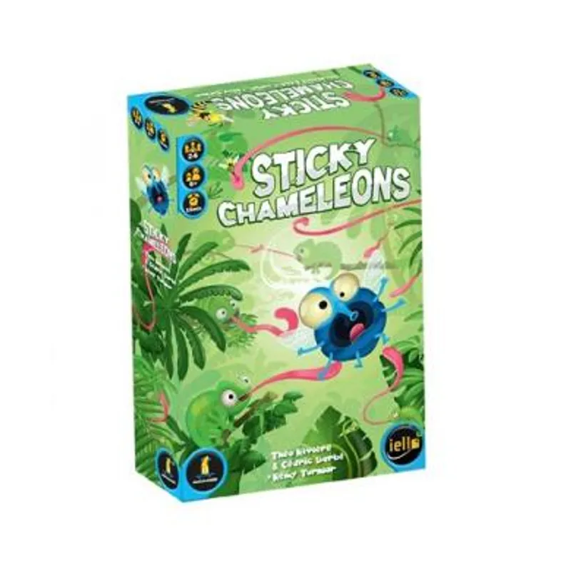 Društvena igra Sticky Chameleons svakom igraču daje lepljivi jezik kameleona, a sto je prekriven sa šest pločica raznobojnih insekata, zajedno sa nekoliko mušica. Da biste pobelidi morate reagovati brže od ostalih i uhvatiti svoj plen, problem je što Vam pored brzine treba i izvesna doza preciznosti jer ne jede se sve što leti! Da li ste spremni da upoterebite Vaše dugačke, lepljive jezike i dođete do zasluženog obroka i naravno pobede, ili će hrana namenjena Vama završiti kod ostalih kameleona?