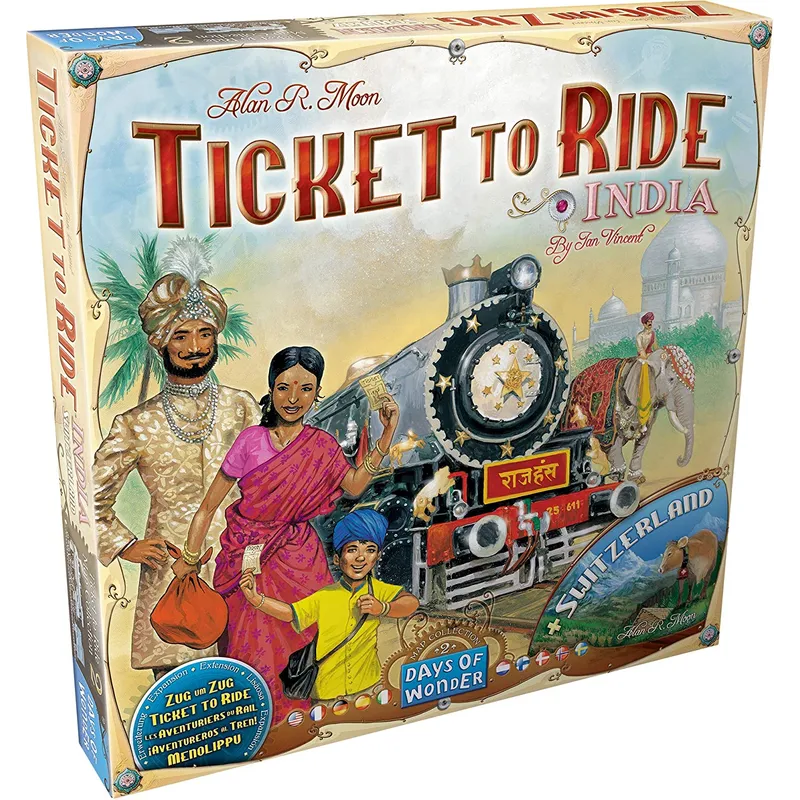 Društvena igra Ticket to Ride kao i društvena igra Ticket to Ride Europe dobile su još jednu ekspanziju (proširenje). Proširenje za društvenu igru Ticket to Ride India & Switzerland nudi Vam dva nova scenarija: