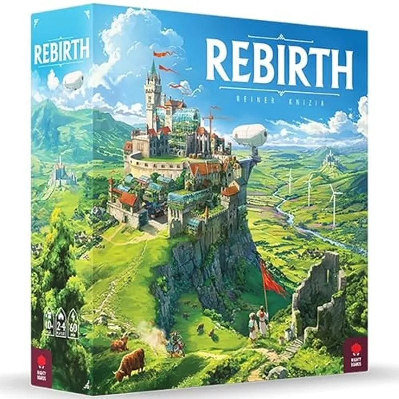 Rebirth je nova, elegantna "tile-laying" igra proslavljenog dizajnera Reinera Knizia. Svaki potez je ključan. Igrači izvlače pločicu iz svoje zalihe i strateški je postavljaju na tablu. Ove pločice predstavljaju doprinos vašeg klana obnovi zemlje. Rebirth nagrađuje strateško predviđanje i pametno taktičko igranje, sa sve težim odlukama koje se pojavljuju tokom igre. Morate pažljivo planirati svaki potez, razmišljajući ne samo o trenutnim benefitima, već i o dugoročnim posledicama za vašu dominaciju.
