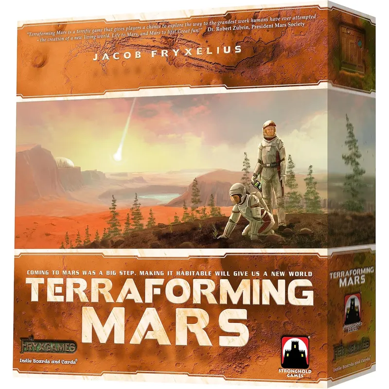 U igri "Terraforming Mars" igrate jednu od tih korporacija i radite zajedno u procesu oblikovanja terena, ali takmičite se za dobijanje pobedničkih bodova koji se dodeljuju ne samo zbog vašeg doprinosa u oblikovanju terena, već i za unapredjenje ljudske infrastrukture u celom Sunčevom sistemu i obavljanje drugih pohvalne stvari.nIgrači dobijaju jedinstvene projektne kartice (od preko dvesta različitih) kupujući ih u svoju ruku. Projekti (kartice) mogu predstavljati bilo šta, od uvodjenja biljnog života ili životinja, bacanja asteroida na površinu, izgradnje gradova, do miniranja luka Jupitera i uspostavljanja industrije gasova sa efektom staklene bašte za zagrevanje atmosfere. Kartice vam mogu dati neposredne bonuse, kao i povećati proizvodnju različitih resursa. Medjutim, vaš prihod se nadopunjuje s vašom proizvodnjom, a VP (pobednički bodovi) takodje dobijate iz mnogih drugih izvora. Svaki igrač prati svoju proizvodnju i resurse na pločama svojih igrača, a igra koristi šest vrsta resursa: MegaCredits, Steel, Titanium, Plants, Energi i Heat. Na tabli za igre takmičite se za najbolja mesta za vaše gradske pločice, okeanske pločice i zelenilo. Takmičite se i za različite prekretnice i nagrade u vrednosti mnogih VP-ova. Brojne nagrade i priznanja čine ovu igre još popularnijom nego što već jeste!