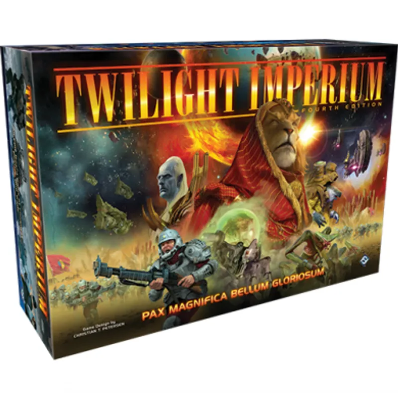Twilight Imperium (Fourth Edition) is a game of galactic conquest in which three to six players take on the role of one of seventeen factions vying for galactic domination through military might, political maneuvering, and economic bargaining. Every faction offers a completely different play experience, from the wormhole-hopping Ghosts of Creuss to the Emirates of Hacan, masters of trade and economics. These seventeen races are offered many paths to victory, but only one may sit upon the throne of Mecatol Rex as the new masters of the galaxy.