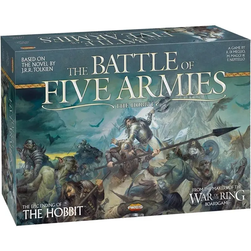 Društvena igra Battle of Five Armies – zasnovana na vrhuncu Tolkinovog romana Hobit – suprotstavlja vojske Elvenkinga, patuljke Dain Ironfoota i ljude sa jezera koje predvodi Bard the Bowman protiv horde vukova, goblina i slepih miševa na čelu sa Bolgom, sinom Azoga. Hoće li Gandalf preokrenuti tok slobodnih naroda sa Srednje Zemlje? Hoće li stići veliki orlovi, ili će Beorn priskočiti u pomoć? Ili, hoće li Bilbo poginuti u poslednjoj borbi na Ravenhillu?