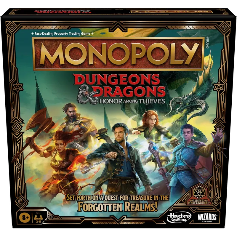 Zaboravite klasične ulice Monopola i zakoračite u fantastični svet Zaboravljenih Carstava! Predstavljamo vam Monopoly Dungeons & Dragons Honor Among Thieves – savršenu igru koja spaja čaroliju D&D sveta i popularnu mehaniku Monopola, inspirisanu filmom Dungeons & Dragons Honor Among Thieves!