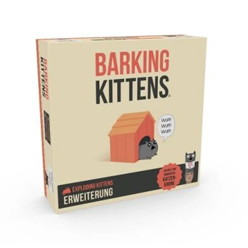 Exploding Kittens Barking Kittens je treća ekspanzija za društvenu igru Exploding Kittens koja donosi 20 potpuno novih karata i novi mod igranja, kao i krunu koja vas štiti od pojedinih napada protivnika!