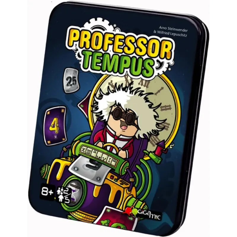 Peščani časovnici na karticama profesora Tempusa predstavljaju pravu vrednost. U ovoj drustvenoj igri igrač sa najviše časovnika pobeđuje. Tri seta karata se odigravaju u isto vreme po rastućem ili opadajućem redosledu. Na kraju svake runde kartice koje ste skupili zadržavate za sebe. Igrajte Vašu ruku pažljivo, jer setovi menjaju ruke konstantno. Profesor Tempus je zabavna i interaktivna edukativna igra. Namenjena deci i celoj porodici, uzrasta 8 godina i stariji.