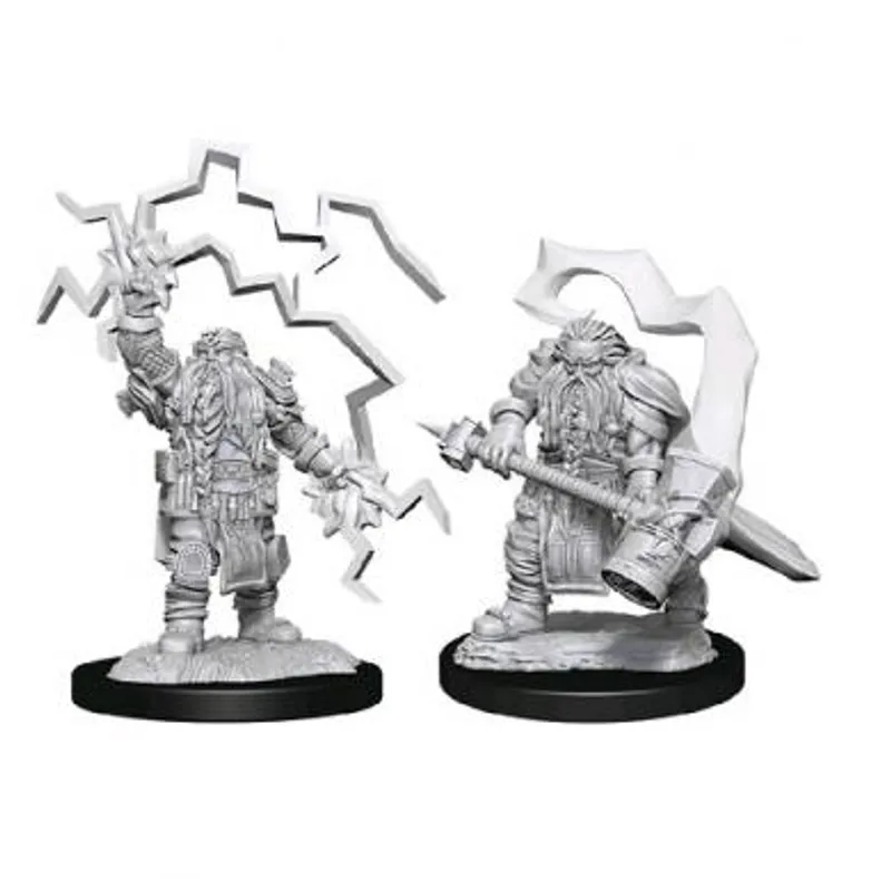 D&D Nolzur's Mini Dwarf Male Cleric pakovanje sadrži dve figure u različitim pozama.