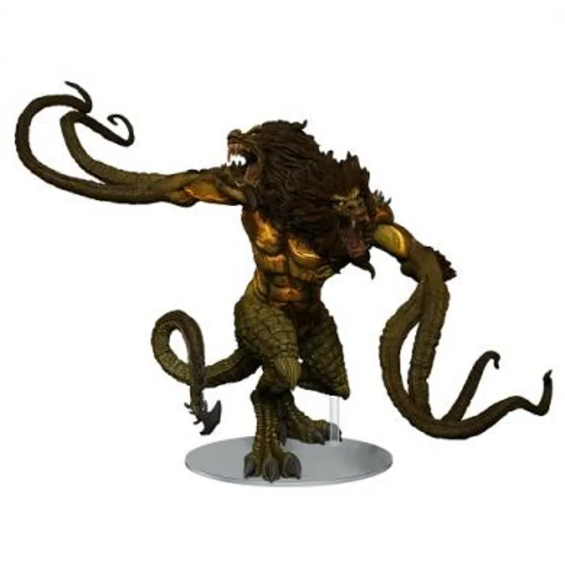 DD5 Icons Demogorgon, Prince of Demons je demon različitih oblika, sa kandžama na stopalima i dugačkim pipcima koji izbijaju iz njegovih ramena, sa majmunolikim telom na koje se nadovezuju dve glave, Ameul i Hatradija, od kojih se ne zna koja je opasnija, a njihov pogled donosi ludilo i konfuziju svakom ko se suoči sa njim! DD5 Icons Demogorgon, Prince of Demons je savršen dodatak Vašoj kolekciji minijatura, ili strašan neprijatelj na bojnom polju! Figurica je obojena i spremna je da se ukjluči u avanturu odmah po otvaranju!