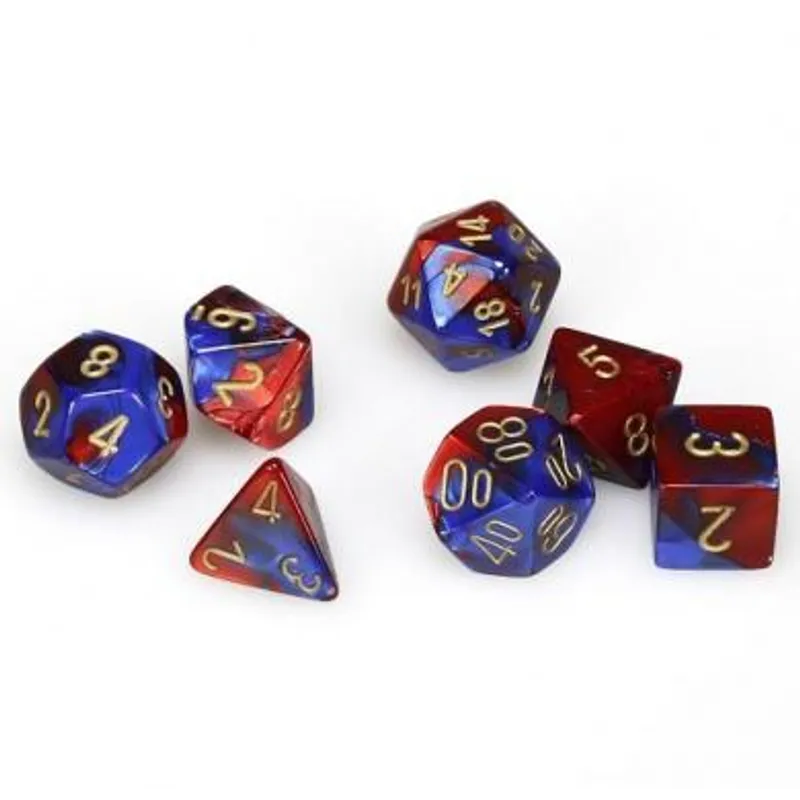 Jednu D4, jednu D6, jednu D8, jednu D10, jednu Tens 10™ (procentualna kockica), jednu D12 i jednu D20 kockicu.