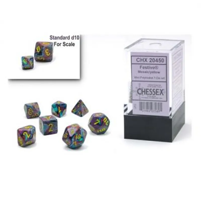 Chessex Mini Festive Mosaic with Yellow 7-Dice Set