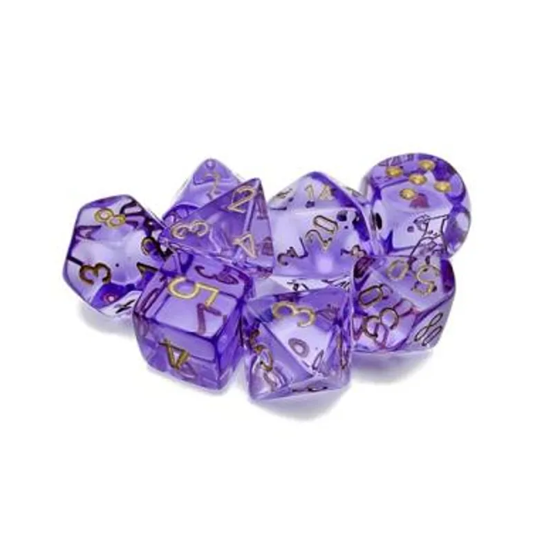 Chessex Translucent Lavender with Gold 7-Dice Set with bonus die (Lab Dice)