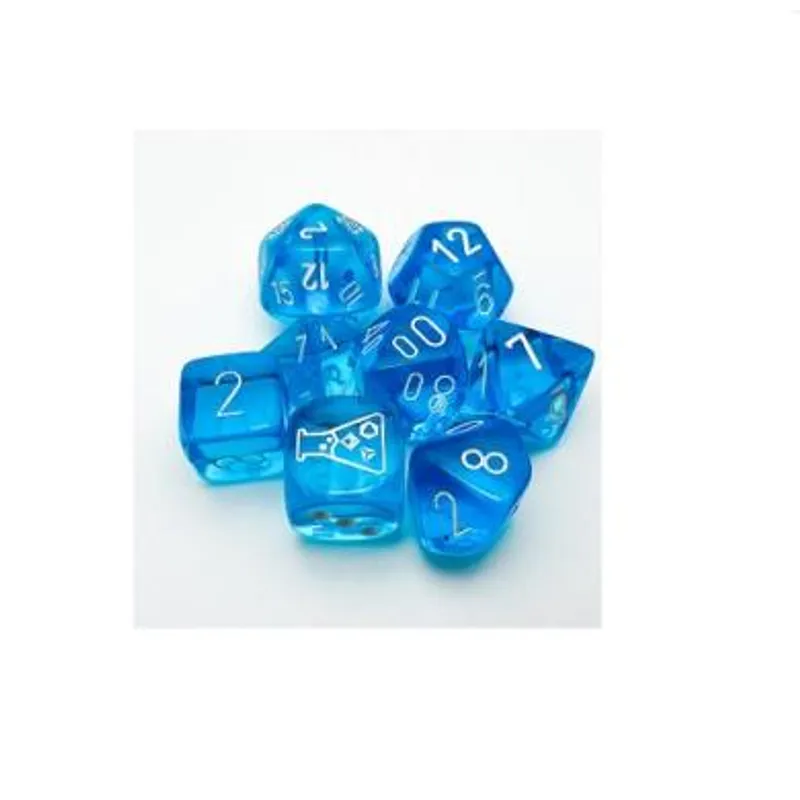 Chessex Translucent Tropical Blue with White 7-Dice Set with bonus die (Lab Dice)