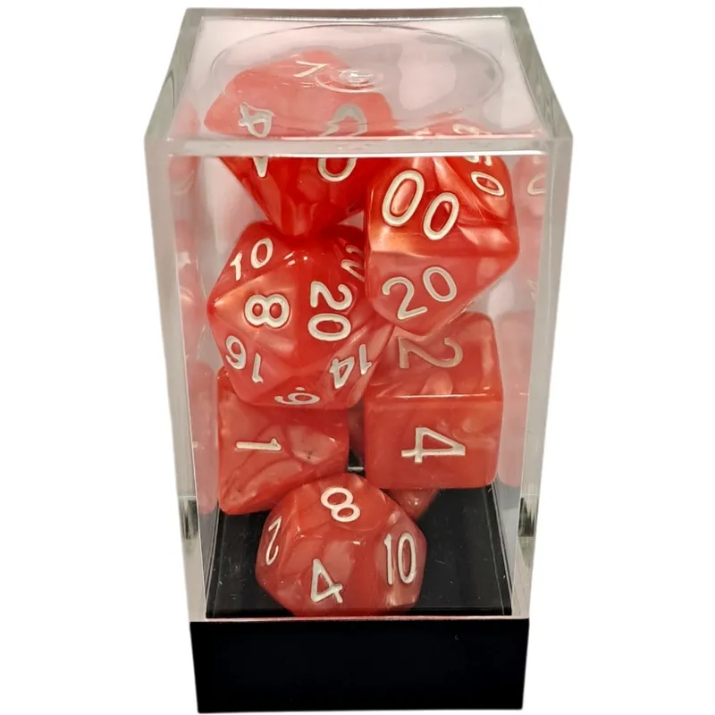 Jednu D4, jednu D6, jednu D8, jednu D10, jednu Tens 10™ (procentualna kockica), jednu D12 i jednu D20 kockicu.
