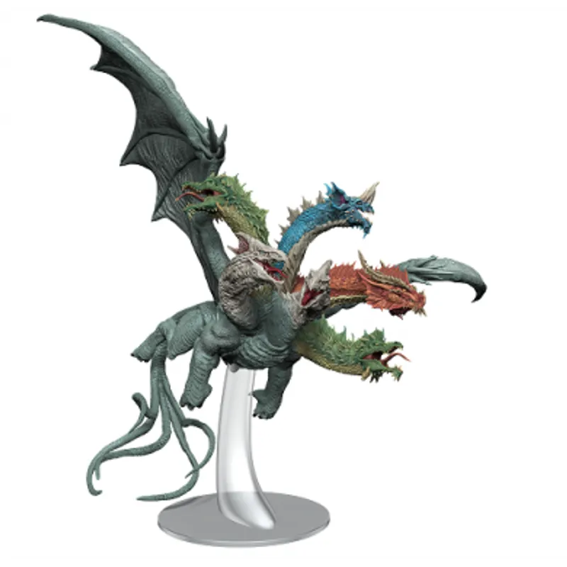 DD5 Icons: Fizban's Treasury Premum Set 2 sadrži Dracohidru, nastalu pri pokušaju da se kroz tajni eksperiment rekreira snaga čuvenog Tiamata. Spajanjem magije hromatskih zamejva sa krvlju hidre rezultiralo je drakonskim čudovištem sa krilima i višestrukim zmijskim repovima. Ovaj primerak biće savršen dodatak Vašim avanturama!