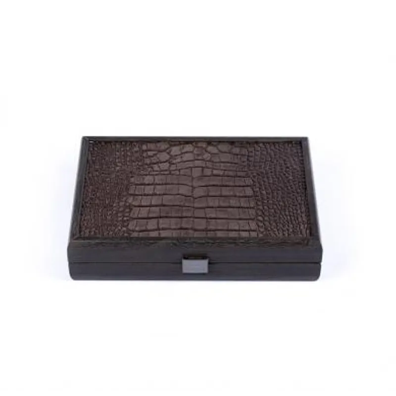 Podignite svoje večeri društvenih igara uz naš Premium Domino Set, smešten u luksuznu tamnosivu torbicu od kože s krokodilskim uzorkom i upotpunjen prelepo izrađenom drvenom kutijom. Ovaj set predstavlja vrhunac luksuznog dekora za sobe sa društvenim igrama i savršen je za one koji cene visokokvalitetne, ručno izrađene komplete igara.