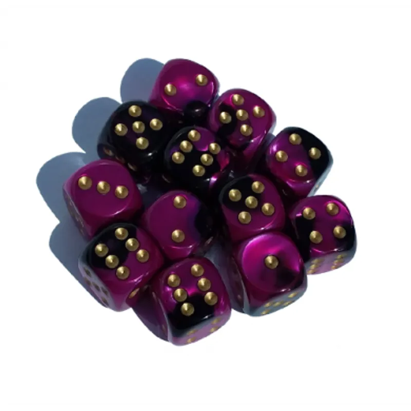 Chessex Gemini Black Purple with Gold 16mm D6 (12 Dice)