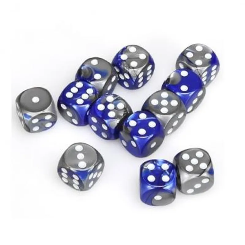 Chessex Gemini Blue Steel with White 16mm D6 (12 Dice)