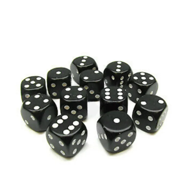 Chessex Opaque Black with White 16mm D6 Dice Block (12 Dice)