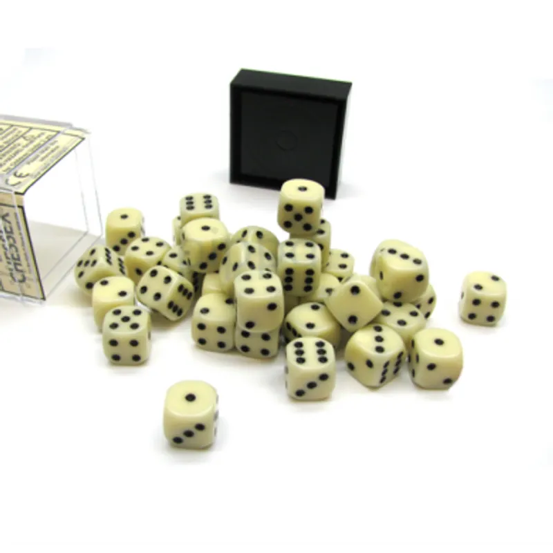Chessex Opaque Ivory with Black 12mm D6 Dice Blocks (36 Dice)