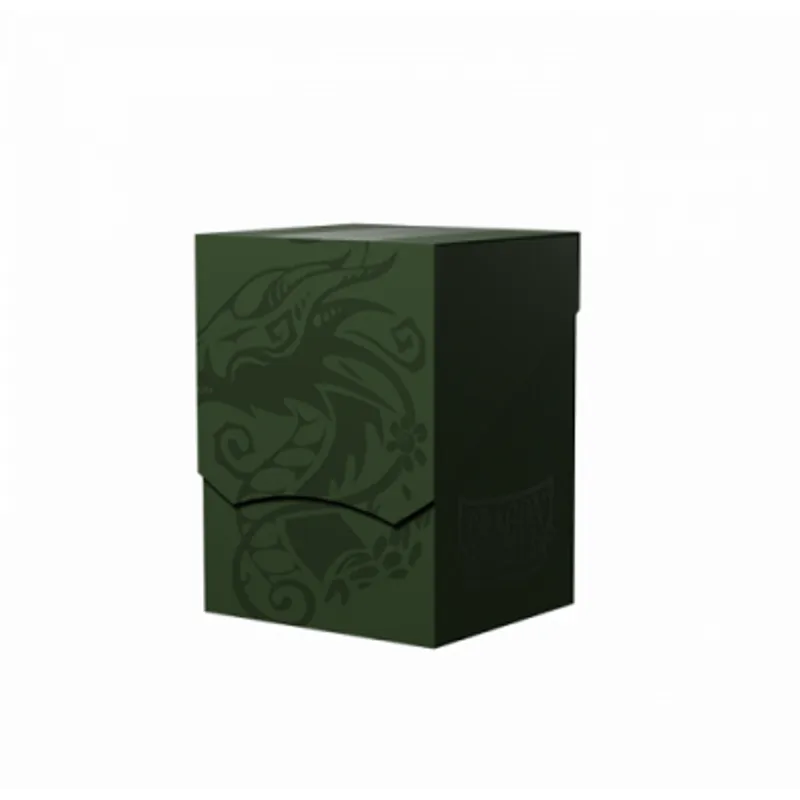 Dragon Shield Deck Shell Forest Green čvrsta kutijica sa dva sloja zaštite za čuvanje do 100+ karata (Pokemon, Yu Gi Oh, MTG ili bilo koji TCG sa standardnom veličinom karata) zaštićenih slivovima. Poklopac se obmotava oko kutije radi sigurnijeg zatvaranja ili se može potpuno rasklopiti radi lakšeg pristupa kartama. Svaka Double Shell kutijica sadrži separator za karte i na vrhu ima polje za zapisivanje.