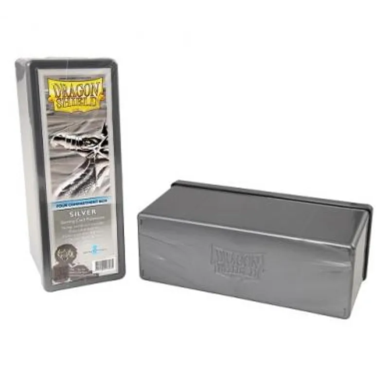 Sa Dragon Shield sivom kutijicom sa četiri zasebna odeljka možete sa sobom da ponesete i četiri svoja špila.. Odeljci su podeljeni tako da svaki odeljak pruža sigurnost za 80 karata u svojim slivovima. Kutijica je savršena za bilo koji TCG ili za bilo koju društvenu igru koja ima dosta karata. Dimenzije karata su standard (63×88 mm) ili japanske (small) (59×86 mm).