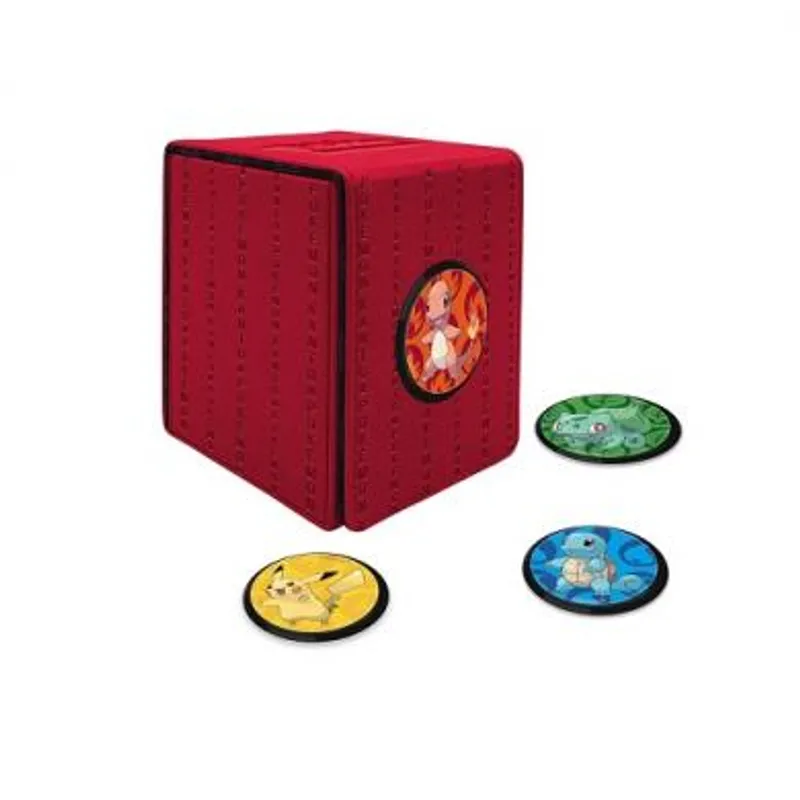 PKM Galar Alcove Click Deck Box kutijica za čuvanje karata će bezbedno čuvati i do 100 Pokemon karata zaštićenih slivovima.. Poklopac je dizajniran tako da se prilikom zatvaranja sam zaključa pomoću magneta i time osigura bezbednost vaših karata od ispadanja ako se kutijica okrene naopako. PKM Galar Alcove Click Deck Box kutijice su napravljene od čvrstog, kvalitetnog materijala, presvučene imitaciojom meke kože i lake su za odrzavanje. Uz kutjicu dolaze i tri magnetna bedža koja se mogu menjati sa onim koji je trenutno na kutijici!