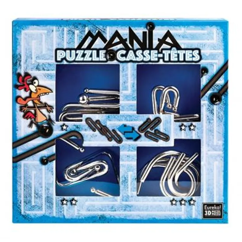 Set od 4.metalne žičane mozgalice sadrži glavolomku težine od 1. do 3., jednu mozgalicu nivoa 1., dve mozgalice nivoa 2. i jednu mozgalicu težine 3.