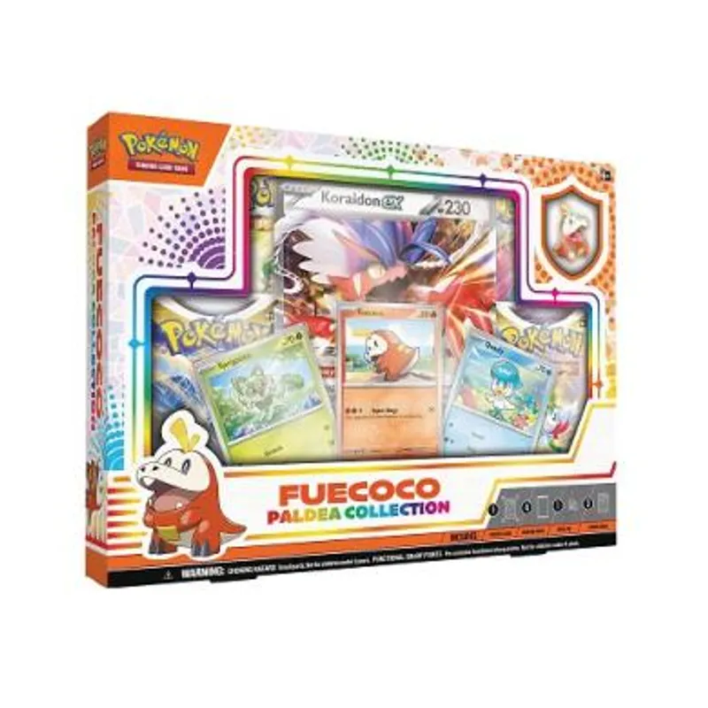 Pripremite se za potpuno novu avanturu u Paldea regionu uz Pokemon TCG Fuecoco Paldea Collection! Prvi Pokemon partneri Sprigatito, Fuecoco i Quaxly pridružiće se vašoj kolekciji u vidu svetlucavih promotivnih karata, a Fuecoco bedž će vam omogućiti da se pravite važni sa svojim vatrenim, krokodilskim Pokemon-om gde god da krenete. Otkrijte još više iznenđenja poput velike promotivne EX karte, kao i mnoštvom booster pakovanja uz pomoć kojih ćete proširiti svoju kolekciju karata.