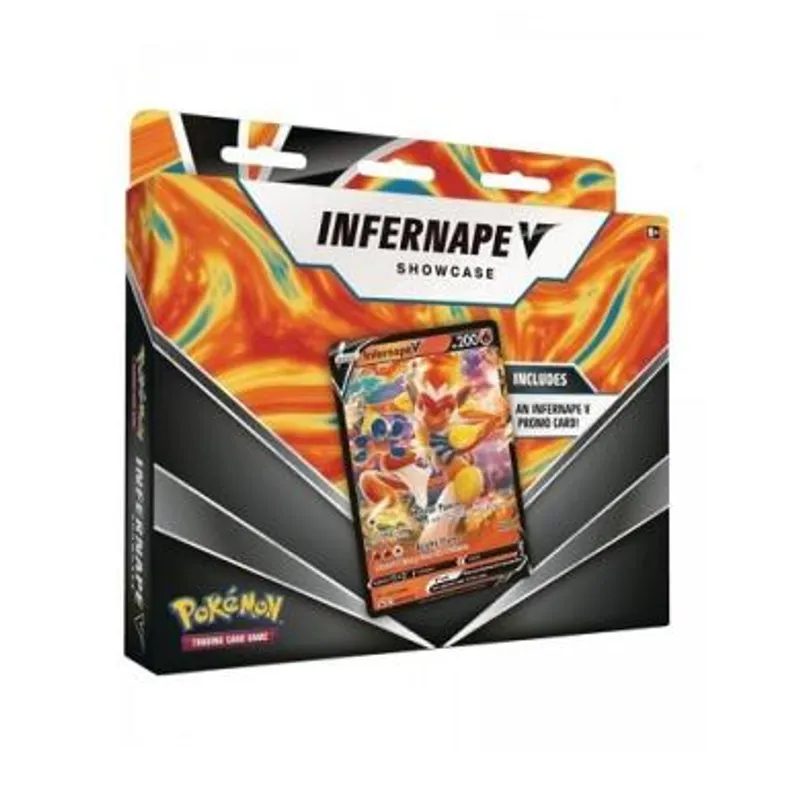 Pojačajte žar u borbi uz agilnost I snagu Infernape V-a! Uz njegov Meteor Punch napad, nastavite da bacate novčiće, a zatim zapalite bojno polje uz ogromni Bright Flame napad. Unapredite svoju igru sa setom koji slavi moći i strast vatrenog Pokemon-a. U Pokemon TCG Infernape V Showcase pronaći ćete igrivu verziju Infernape V-a kao i nekoliko Pokemon TCG booster pakovanja kako biste mogli da unapredite svoj špil ili da popunite svoju kolekciju.