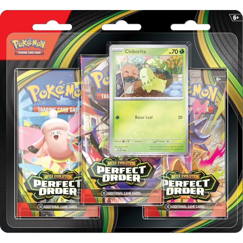 Pokemon TCG Mega Evolution Perfect Order 3-Booster Blister Chikorita