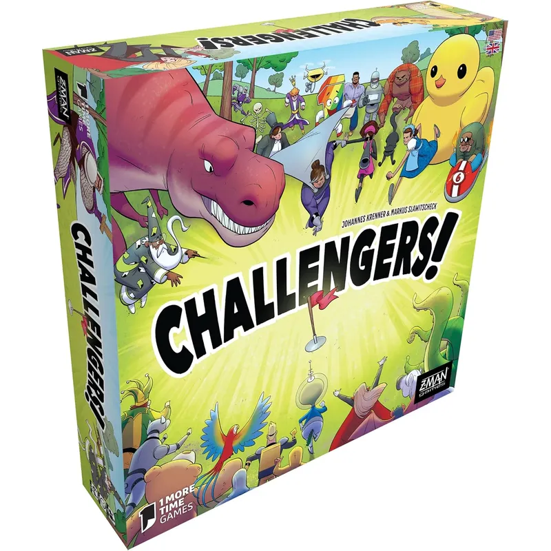 Društvena igra Challengers! je interaktivna igra izgradnje šila koja se igra po principu turnira gde u svakom krugu nailazite na novog protivnika. Birajte nove članove i dodajte ih u svoj špil, koji se može sastojati od čarobnjaka, vanzemaljaca, mačaka, gangstera i krakena. U ovoj igri ćete sresti 75 različitih likova sa više od 40 uzbudljivih efekata koji će Vam pružiti nezaboravno iskustvo i sate zabave. Birajte između šest različitih setova i otkrivajte nove strategije sa svakom novom partijom. Zadržite kontrolu nad zastavom kako biste osvojili trofej, kroz sedam rundi kvalifikujte se za finale, nadmašite svoje protivnike i pobedite!