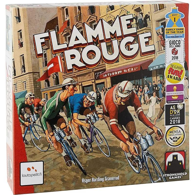 Društvena igra Flamme Rouge je brza, taktička, biciklistička igra u kojoj svki igrač kontroliše tim od dva vozača. Cilj igrača je da prvi pređu ciljnu liniju sa jednim od svojih vozača. Igrači pomeraju svoje vozače tako što izvlače i igraju karte iz špila svakog od vozača. izbegnite iscrpljenost i pozicionirajte svoj tim na savršeno mesto za poslednji sprint!