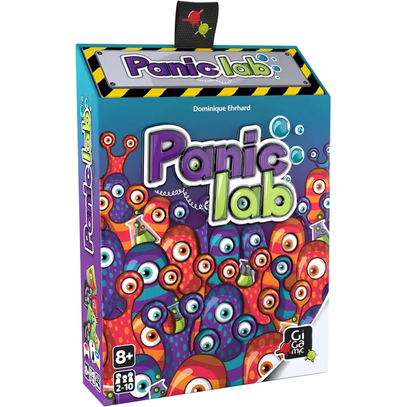 PANIC LAB je edukativna igra opažanja i brzog reagovanja. Amebe su pobegle iz laboratorije i razmigoljile su se na sve strane. Uhvatite ih brzo! Svi igraju zajedno i u isto vreme igraju. Igrač koji je na potezu baca 4 jedinstvene kockice da bi se utvrdilo iz koje labaratorije je ameba pobegla, u kom pravcu i kojeg je oblika, šare i boje. Prvi igrač koji nađe amebu pobeđuje u toj rundi i dobija poen. Ali pazite, amebe su lukave i mogu se sakriti u vazdušnim cevima ili čak mutirati. Treba Vam hladna glava, oštra moć zapažanja i brza ruka da vratite Vašu labaratoriju pod kontrolu.
