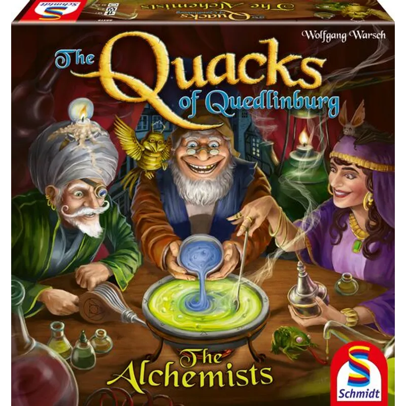 Samo najbolji iz njihovih redova su potrebni: Alhemičari Quedlinburga suočavaju se sa najkompleksnijim slučajevima u nadrilekarstvu. Oni koriste sofisticiranu opremu kako bi destilirali esencije u nadi da će da olakšaju pacijentima muke. Destiliranje igračima donosi vredne bonuse i specijalne funkcije koje donose dodatne prednosti kako igra odmiče. Ova ekspanzija sadrži 20 novih karata gatare i dve nove knjige sastojaka… Ali još bitnije, sadži dosta novih, jedinstvenih sati igranja! Društvena igra Quacks of Quedlinburg u kombinaciji sa ekspanzijom Quacks of Quedlinburg The Herb Witches i The Quacks of Quedlinburg The Alchemists postaje jedna od onih igara koje nije moguće prestati igrati.