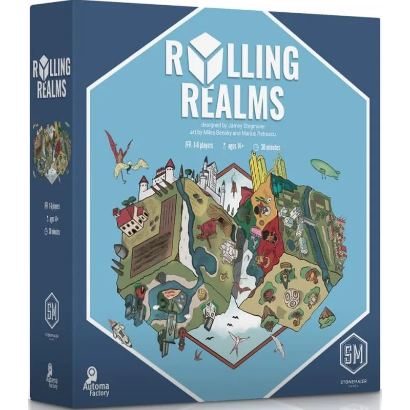 Društvena igra Rolling Realms, napravljena za doba pandemije i sa idejom da se može igrati i online sa društvom, jeste roll-and write igra u kojoj se igrači takmiče da zarade najviše zvezdica u nizu mini igara, u 3 runde.