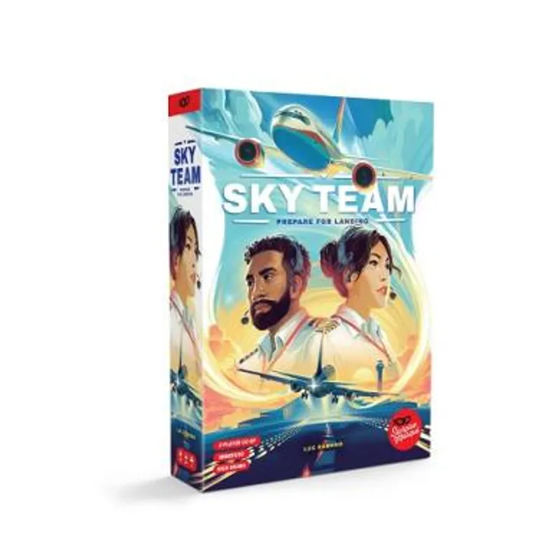 Društvena igra Sky Team je kooperativna igra isključivo za dva igrača, u kojoj preuzimate uloge pilota i kopilota koji upravljaju avionom. Vaš cilj je da radite zajedno kao tim na sletanju vašeg aviona na različite aerodrome širom sveta. Da biste sleteli svojim avionom, morate oprezno da postavite kockice na prava mesta u kokpitu kako biste balansirali osovinu svog aviona, kontrolisali njegovu brzinu, otvorili zakrilce, proširili stajni trap, kontaktirali kontrolni toranj da biste očistili svoju putanju, čak možete popiti malo kafe kako biste poboljšali koncentraciju dovoljno da promenite vrednost vaših kockica. Ako se avion previše nagne i zaglavi, preleti aerodrom ili se sudari sa drugim avionom, gubite igru...i svoju pilotsku dozvolu...i verovatno svoj život.
