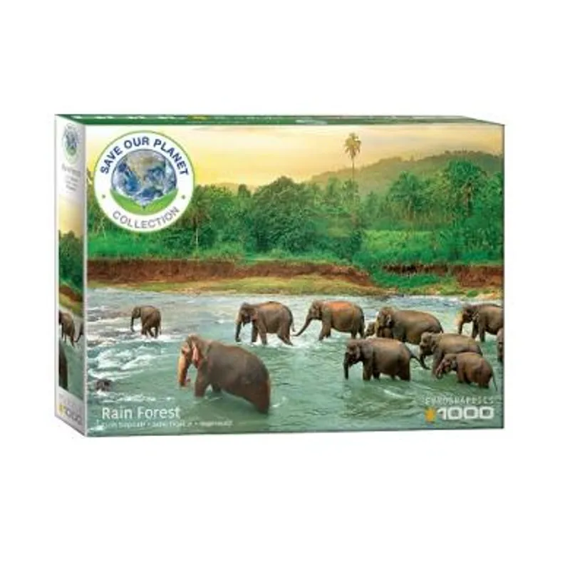 Puzzle Save the Planet! Animal Kingdom je slagalica od 1000 na kojoj je naslikana jedna od kišnih šuma, sa slonovima koji prelaze reku. Ukoliko ste ljubitelj tropskih oblasti i volite da se zabavljate i razvijate Vaše veštine opažanja slažući puzzle, ovo je prava slagalica za Vas!