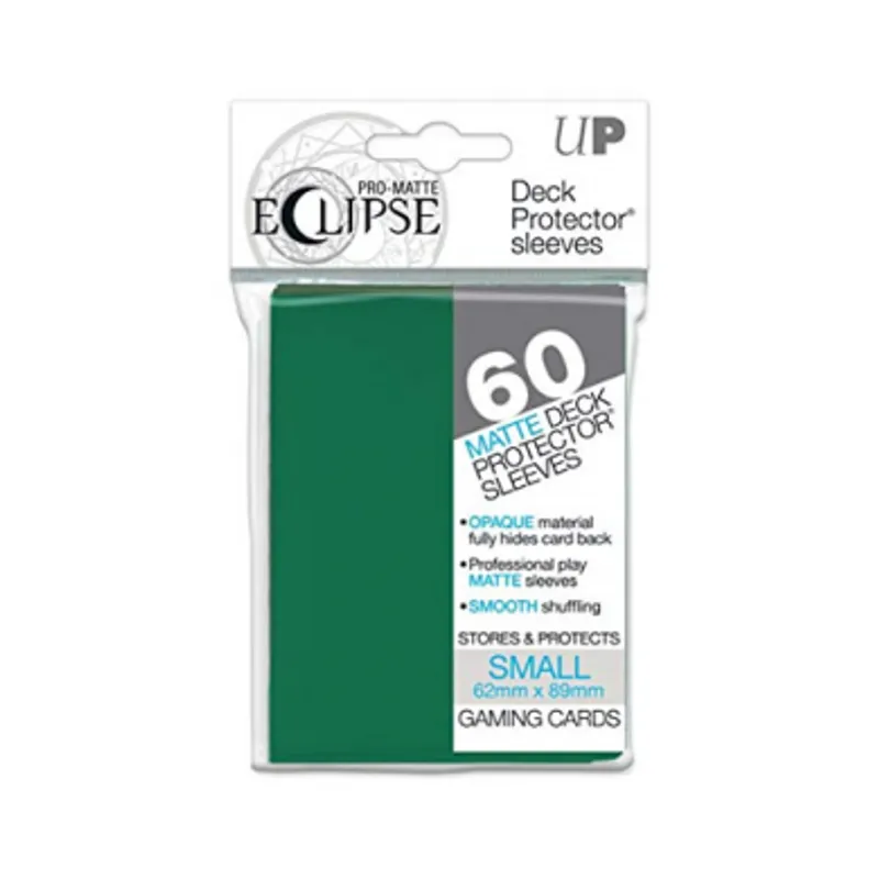 Ultra pro Eclipse Green zaštite za karte prvenstveno namenjene za igru Yu-Gi-Oh! TCG. Ove zaštite odlikuje matirani prozirni deo, tako da karta koja je u tom slivu nema presijavanja na svetlosti ili je to presijavanje minimalno a druga bitna odlika je crna boja u samoj unutrasnjosti sliva. Dok u običnim Matte slivovima iza karte vidite i boju sliva koji koristite u Eclipse slivovima to je uvek crna boja. Broj komada u svakom pakovanju je 60.