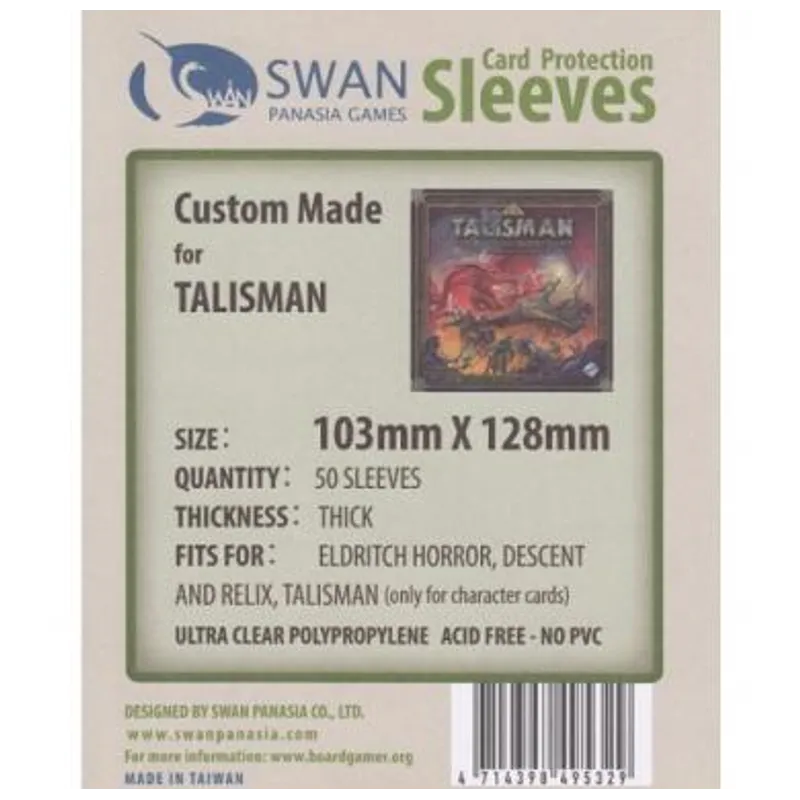 Swan Sleeves Velicina: 103mm x 128mm Kolicina: 50 komada Odgovara za: Talisman (samo za karte karaktera), Eldritch horror, Descent and Relix.