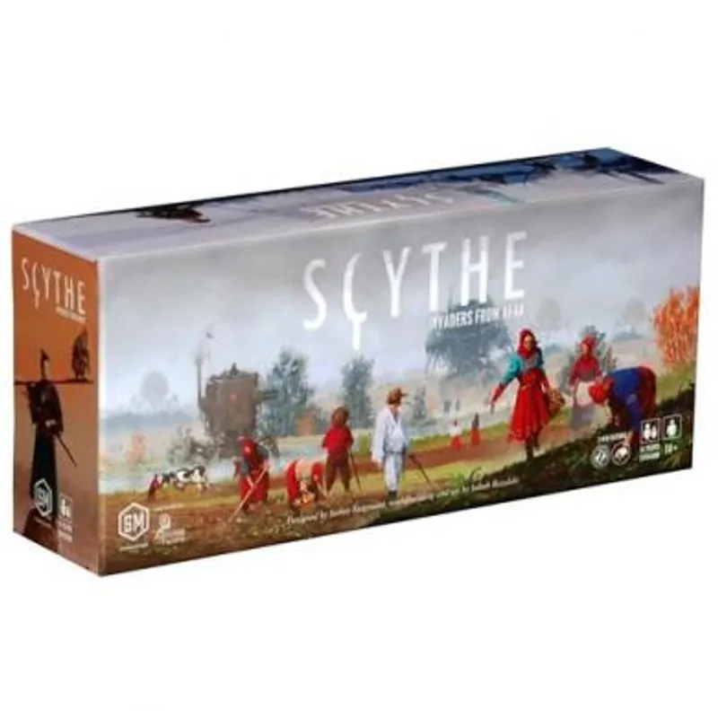 Dok se imperije uzdižu i propadaju u istočnoj Evropi, ostatak sveta se zainteresovao na dešavanja u regionu. Dve daleke frakcije, Albion i Togawa, su poslale svoje izaslanike da osmotre zemlju i upotrebe svoje različite stilove osvajanja. Scythe: Invaders From Afar je ekspanzije za popularnu igru Scythe i donosi dve nove frakcije, 10 minijatura, 62 specijalna drvena tokena i table za nove frakcije. Takođe sadrži nove kartonske tokene, dve table za igrače, šest Automa karata i plastični uložak dizajniran da stane u kutiju ekspanzije ili u originalnu igru Scythe.