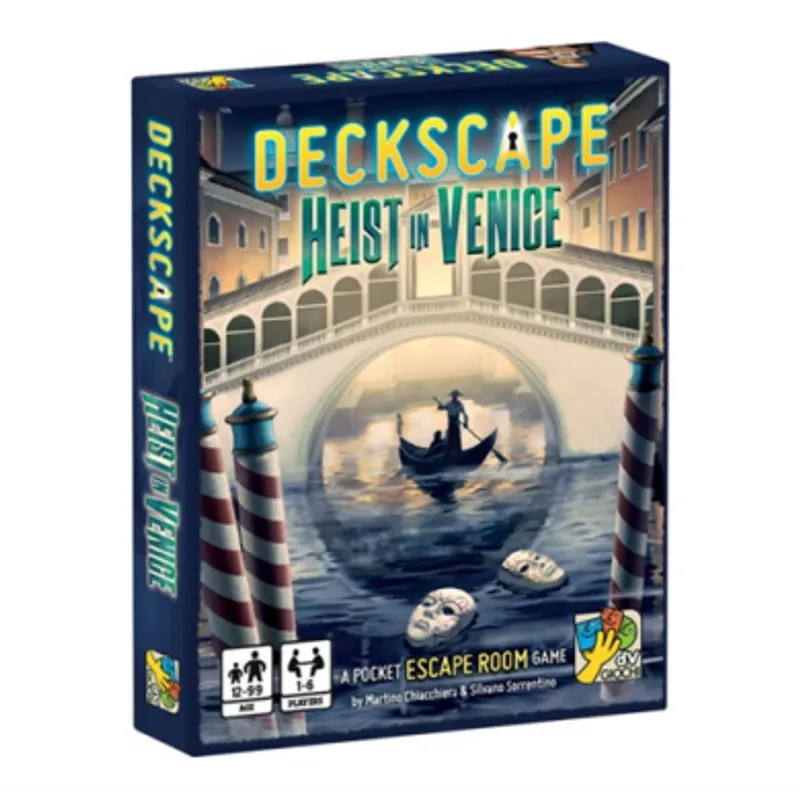 "Deckscape: Heist in Venice" treći je naslov u nizu kooperativnih igara inspirisanih stvarnim bekstvenim sobama u kojima je grupa ljudi "zarobljena" unutar sobe pune zagonetki i čudnih predmeta. Cilj igre je riješiti zagonetke, razumjeti zaplet priče i inteligentno iskoristiti predmete koji se pružaju kako bi što brže izašli iz sobe.