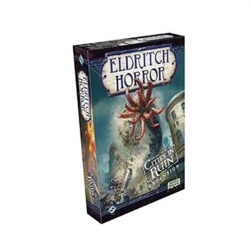 Eldritch Horror Cities in Ruins ekspaznija za društvenu igru Eldritch Horror vodi Vas u nove avanture sa užasima koji prevazilaze sve ono sa čime ste se do sada susreli. Snažni zemljotresi izobličavaju gradove u neprepoznatljive ruševine, tajfunii iskorenjuju obale, a duboko ispod Zemlje se porkreće nešto drevno... U ovom proširenju upoznaćete četiri nova karaktera i gomilu novih čudovišta kao i karata susreta. Možete li još jednom spasiti svet od drevnog zla?