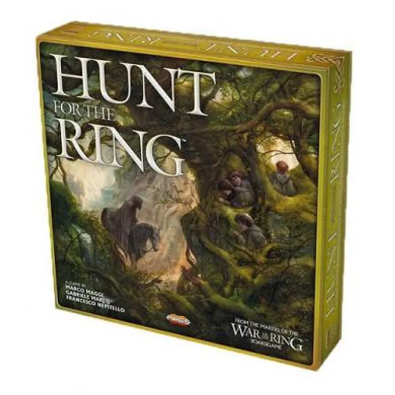 Igra skrivenih pokreta, dedukcije i avanture, verno obilazi početna poglavlja čuvenog "Gospodara prstenova"! U igri "Hunt For The Ring" , jedan igrač preuzima ulogu Froda i njegovih drugova, koji putuju od Okruga do Rivendella, dok do četiri druga igrača predstavljaju Nazgule koji pokušavaju da ulove male hobite! Dok putuje, Frodo i drugi moraju da se odupru tami i prokletstvu Prstena koji nosi! "Hunt for the Ring" je igra skrivenih pokreta koja se igra u dva poglavlja, pri čemu se svako poglavlje igra na drugoj tabli. U prvom poglavlju, Frodo igrač pokušava da se pomeri iz Okruga u selo Bree, dobijajući bodove korupcije ako to ne uradi nakon šesnaest krugova. Ako Frodo igrač uspe, može ili zabeležiti svoju izlaznu tačku (i druge detalje o igri) kako bi odigrao drugo poglavlje kasnije, ili može nastaviti odmah, dok drugo poglavlje ima Frodo igrača koji se kreće od slea Bree-aa do čuvenog grada vilevlnjaka Rivendella. U ovom poglavlju, Frodo igrač ne kontroliše hobite direktno, već umesto toga vuče karte iz špila za putovanje, pri čemu svaka karta pokazuje jedan od mnogih puteva do Rivendella. Topla preporuka za svakog ljubitelja Tolkinovog čuvenovog dela"Lord of the Rings" kao i za ljubitelje temetskih igara.