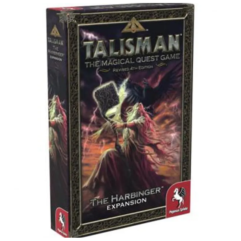 Vreme ističe. Kada je Harbinger ušao u carstvo, sa sobom je doneo proročanstvo o predstojećoj propasti i niz od sedam predznaka na koje treba paziti: kada se pojavi sedmi, kraj je stigao. Talisman The Harbinger ekspanzija za društvnu igru Talisman(revised 4th edition) sadrži četiri jedinstvena špila Omen karata, od kojih svaka manifestuje drugačiji pad. Nove karte terena ulaze u igru i menjaju pejzaž, zamenjujući polja pustošima, pustinje sa poplavljenim područijima i gradove sa močvarama. Kako se sudbina približava, sve više se transformiše i carstvo sve dok se ne pojavi sedmi Omen i ceo Talisman postane smrtonosna pustoš.