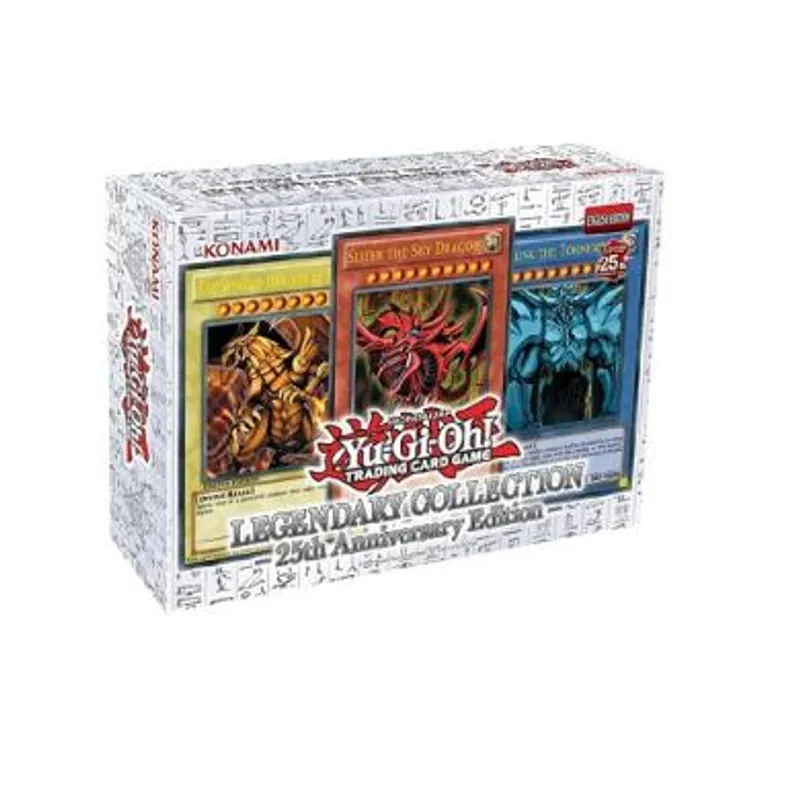 Yu Gi Oh! Legendary Collection: 25th Anniversary Edition je specijalno pakovanje koje donosi i specijalne reprinte prvih pet setova igre - Legend of Blue Eyes White Dragon, Metal Raiders, Spell Ruler, Pharaoh’s Servant, Dark Crisis, kao i po mnogima jedan od najuticajnijih setova igre - Invasion of Chaos! Pored ovih šest boostera, u ovom pakovanju ćete naći i šest promotivnih Ultra Rare karata - Obelisk the Tormentor, Slifer the Sky Dragon, The Winged Dragon of Ra, Blue-Eyes White Dragon, Dark Magician i Red-Eyes Black Dragon. Takođe, nasumično ćete dobiti i jednu od ovih šest karata u specijalnom Quarter Century Secret Rare reritetu, sa oznakom 25th Anniversary! Vratite se u korene Yu-Gi-Oh igre i sakupite sve karte specijalnih reriteta!