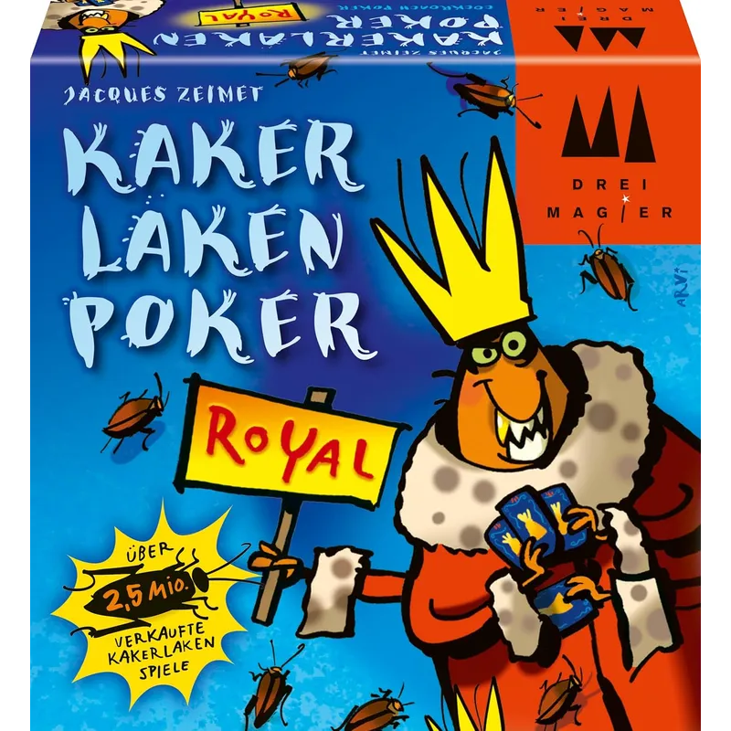 Društvena igra Cockroach Poker Royal je još malo zakoplikovana verzija društvene igre Cockroach Poker u kojoj umesto porodice paukova koju dobijate u osnovnoj igri sada dobijate kraljeve i kraljice ostalih stvorenja. U toj verziji sada imamo i deo koji se zove kazneni špil. Umesto da možete da prosledite kartu i kažete samo stvorenje sada možete da prosledite kartu i kažete da je Kraljević što znači da ako ta karta završi licem nagore ispred Vas primorani ste da uzmete i kartu sa vrha kaznenog špila što znači da sada umesto da dobijete jednu sada dobijate dve karte koje treba da stavite ispred sebe. I eto kako se zabava pretvara u glavobolju…
