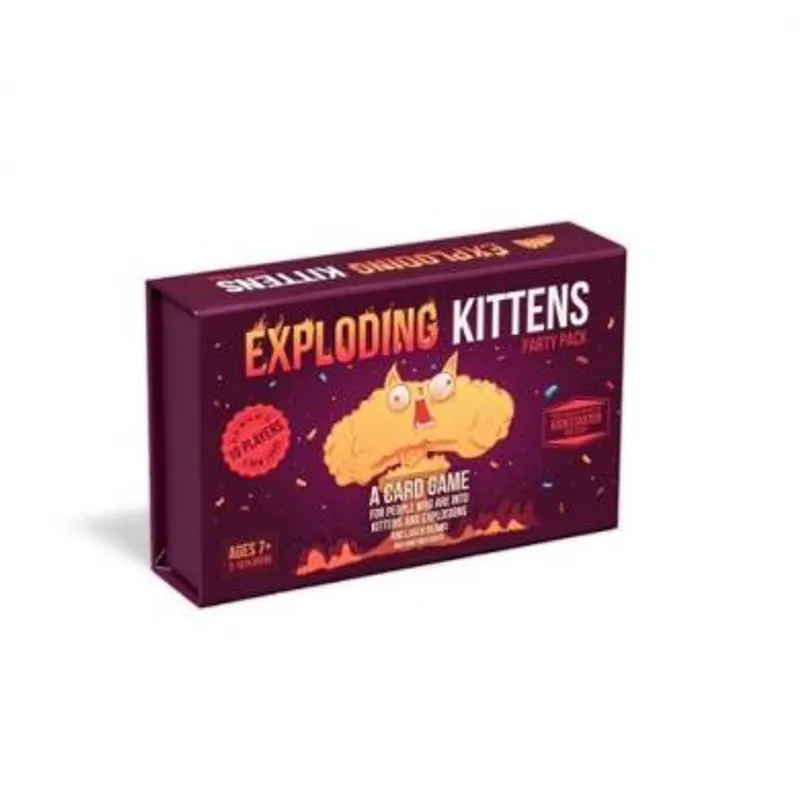 Društvena igra Exploding Kittens Party Pack je potpuno nova verzija društvene igre Exploding Kittens koja pruža mogućnost igranja u čak 10 igrača kao i specijalno pakovanje iz kog ćete čuti mjauke mačaka kada ga otvorite!