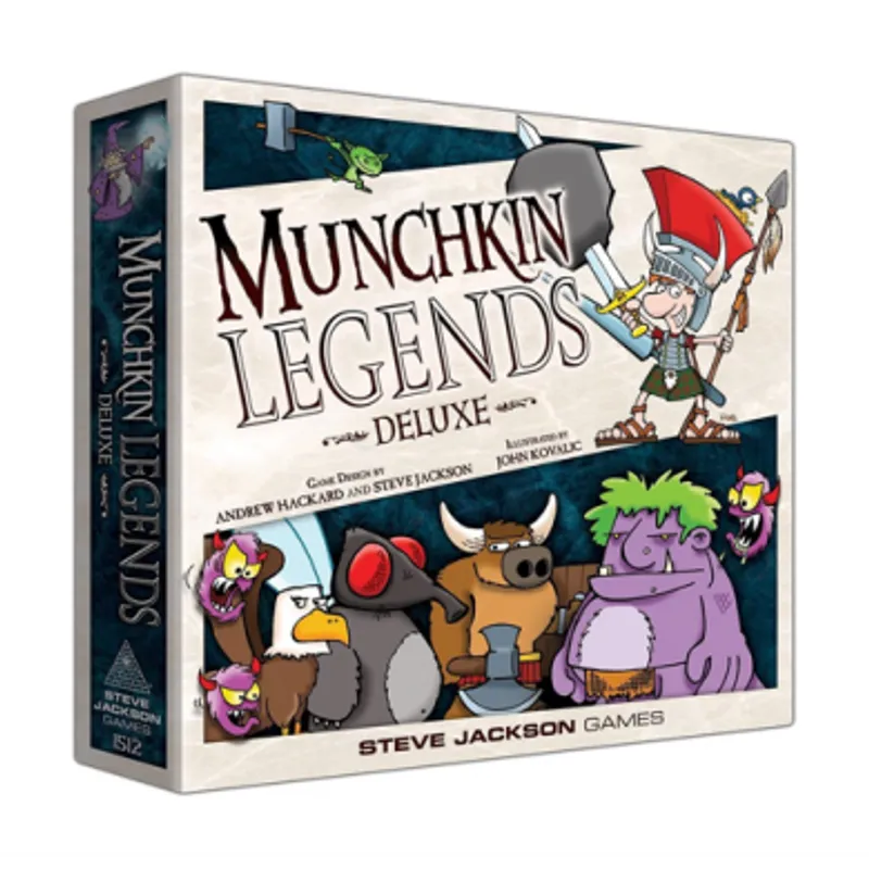 Munchkin Legeds Deluxe je klasicna igra Munchkin sa tematikom karaktera iz poznatih mitova o bogovima, herojima i cudovistima naravno. Unistite sve sto vam se nadje na putu koristeci legendarne predmete, zabite noz u ledja vasim saigracima i ukradite im blago. Deluks verzija donosi Osnovni munchkin legends kao i tablu za igru. Sa svojim prostim pravilima i smešnim dizajnom, Munchkin je brzo postala jedna od najpopularnijih karticnih igrara na svetu. Igrači su u ulozi heroja koji razbijaju vrata tamnica i suočavaju se sa preprekama na putu do desetog nivoa. Ako mislite da ne možete da pobedite ogromno čudovište, uvek možete pozvati vaše saigrače u pomoć. Međutim, drugi igrači takođe mogu da vam zabodu nož u leđa i pojačaju čudovište protiv koga se borite ili smanje vaše šanse tako što bacaju kletve na vas! Usput ćete nailaziti na blaga koja vam pomažu u borbi ili odmažu protivnicima i prvi igrač koji stigne do desetog nivoa je pobednik.