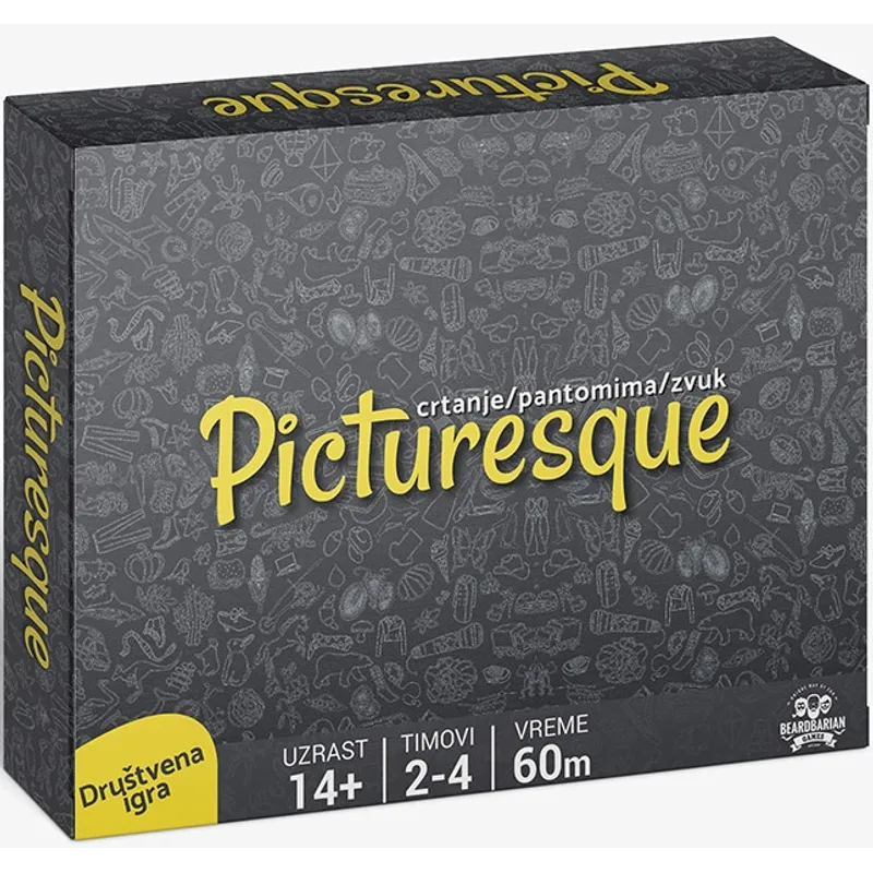 Picturesque je društvena igra koja Vas možda asocira na Pictionary, verujte nam, ne grešite. Picturesque je srpska verzija globalno poznate igre Pictionary tj.polazna osnova je ova igra ali sa malim izmenama, i to ni manje ni više nego POBOLJŠANA verzija...jer zahteva pored crtanja i pevanje i pantomimu kao i imitaciju zvuka. Naime, igra je zaista kvalitetno odrađena i prilagođena našem govornom području pri čemu je od orginalne igre pozajmila samo logiku igranja. Ostalo je sve novo i naše.