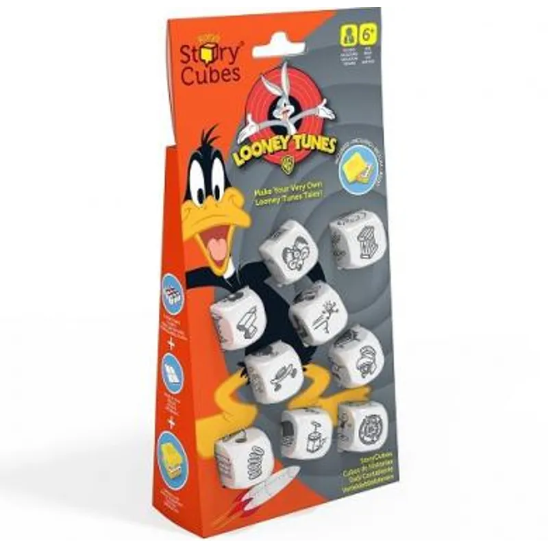 Zaronite u svet mašte uz Rory’s Story Cubes Looney Tunes i sami osmislite odgovore na ova pitanja. Budite slobodni da kreirate svoje sopstvene epizode sa vašim omiljenim Looney Tunes karakterima uz pomoć ovih 9 kockica.