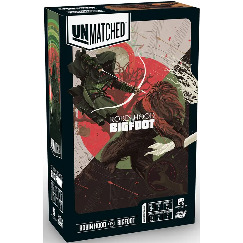 Društvena igra Unmatched Robin Hood vs Bigfoot je minijaturna borbena igra u kojoj će svaki igrač imati priliku da upravlja jednim od moćnih heroja. Svaki heroj predstavljen je jedinstvenim špilom dizajniranim da dočara njegov stil i legendu. Taktička boba u kojoj ćete se naći pružiće Vam jedinstveno iskustvo koje nagrađuje one koji mudro koriste svoje veštine.